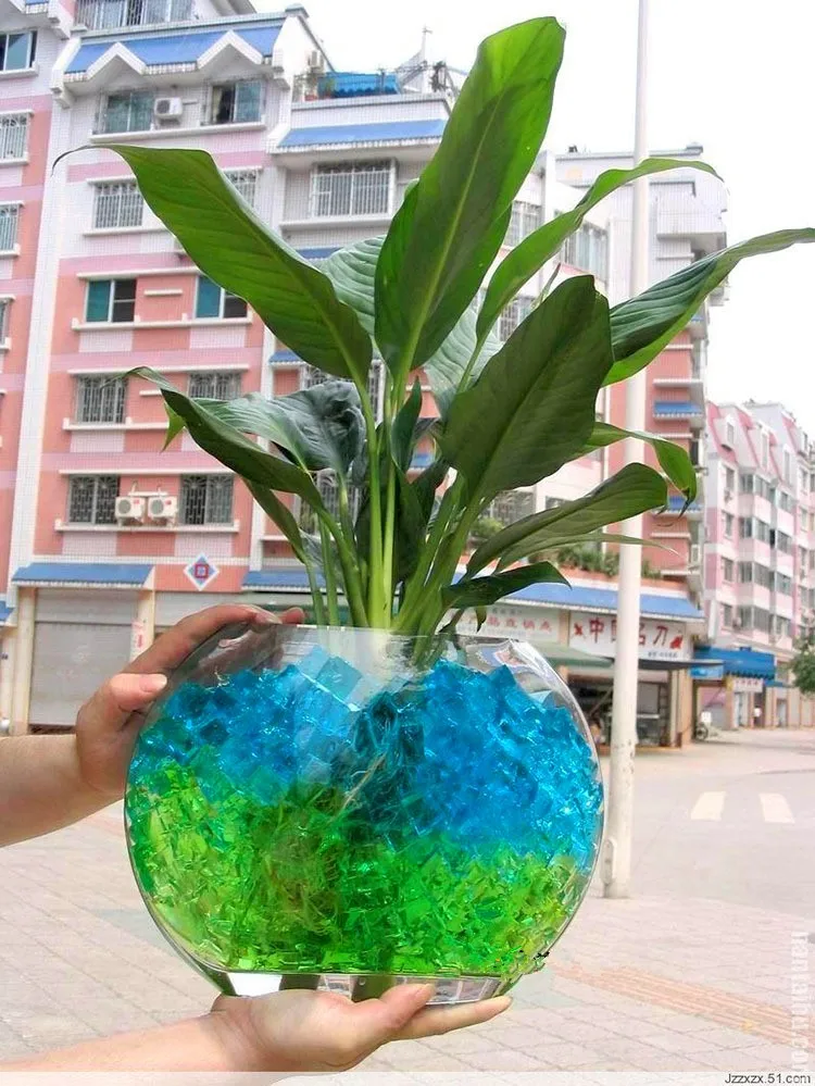 Аквагрунт – это искусственная почва, которая широко используется цветоводами для выращивания цветов. Цветные шарики смешиваясь с водой впитывают в себя влагу, которой потом питают растения. Таким образом, экопочва, на протяжении длительного времени, способна насыщать растения влагой, но не дает ему питательных веществ. Поэтому аквагрунт не подходит для постоянного содержания растения, но удобен для тех ситуаций, когда нет возможности регулярно поливать растение.